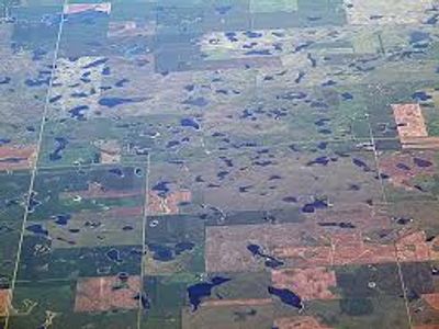 Most prairie potholes are less than an acre in size, but they fill up with melted snow and rainfall, becoming wetlands that are rich in plant life and aquatic animal life. These depressional wetlands support significant populations of breeding waterfowl.